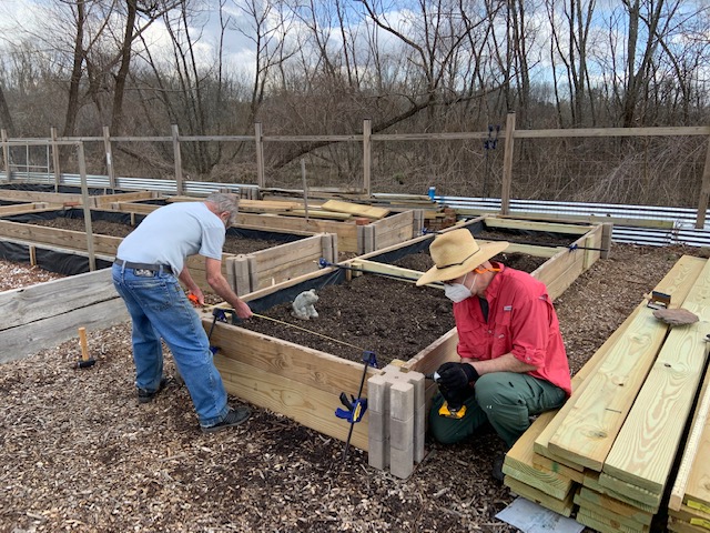 Henderson County Master Gardeners built the BHCG in 2008. At first the garden was planted directly into the ground but eventually the garden switched to raised beds. Today there are more than forty raised beds of various heights to accommodate gardeners of all ages.