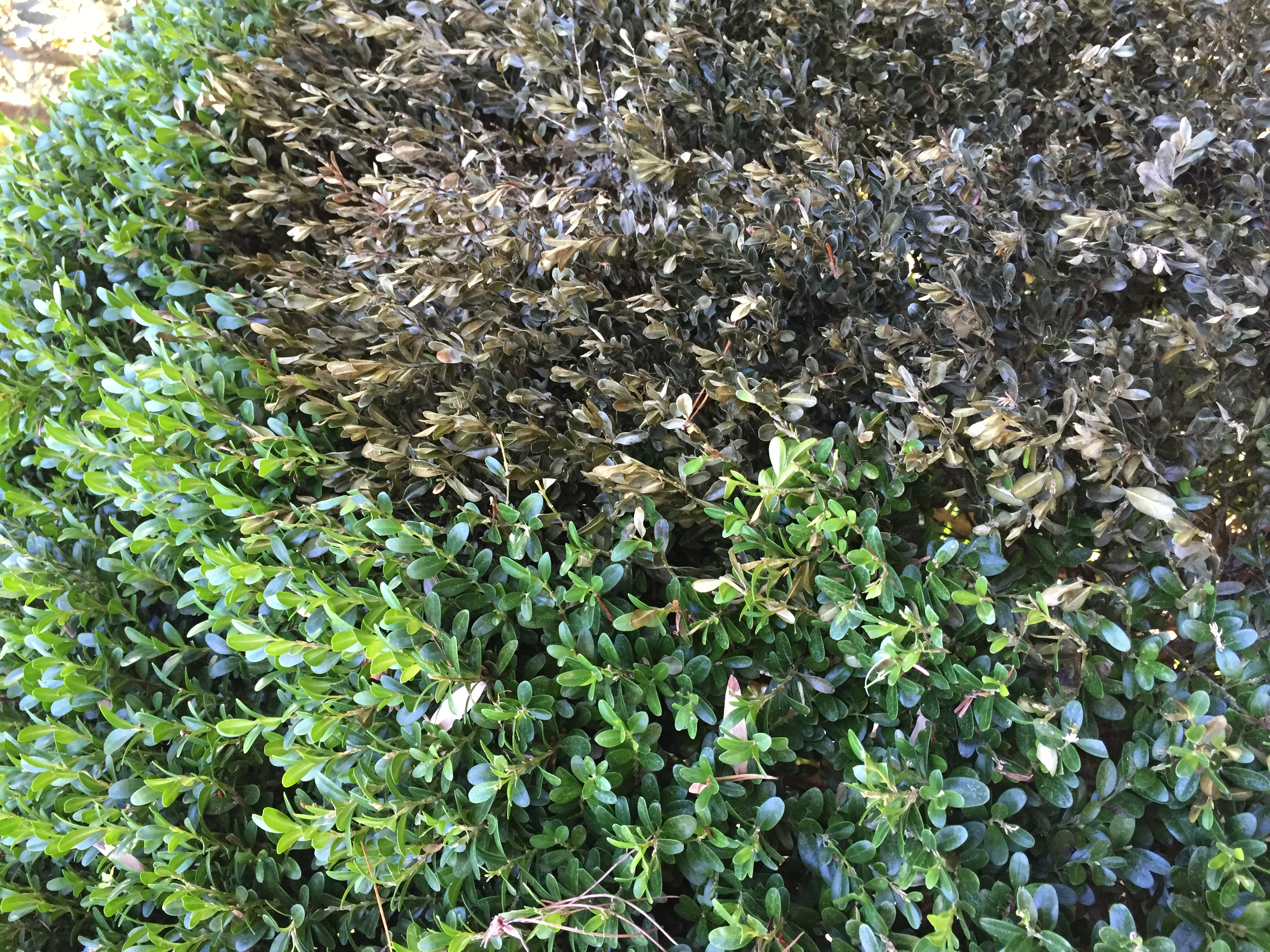 Boxwood blight is a fungal infection that kills boxwoods. The fungus is highly contagious, sticking to both people and animals. The disease is incurable.